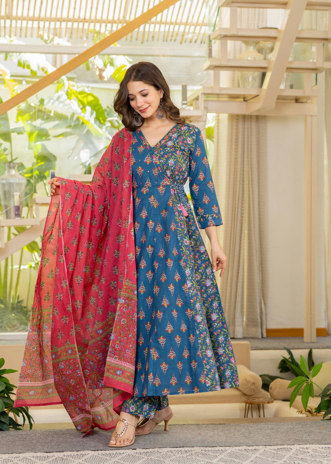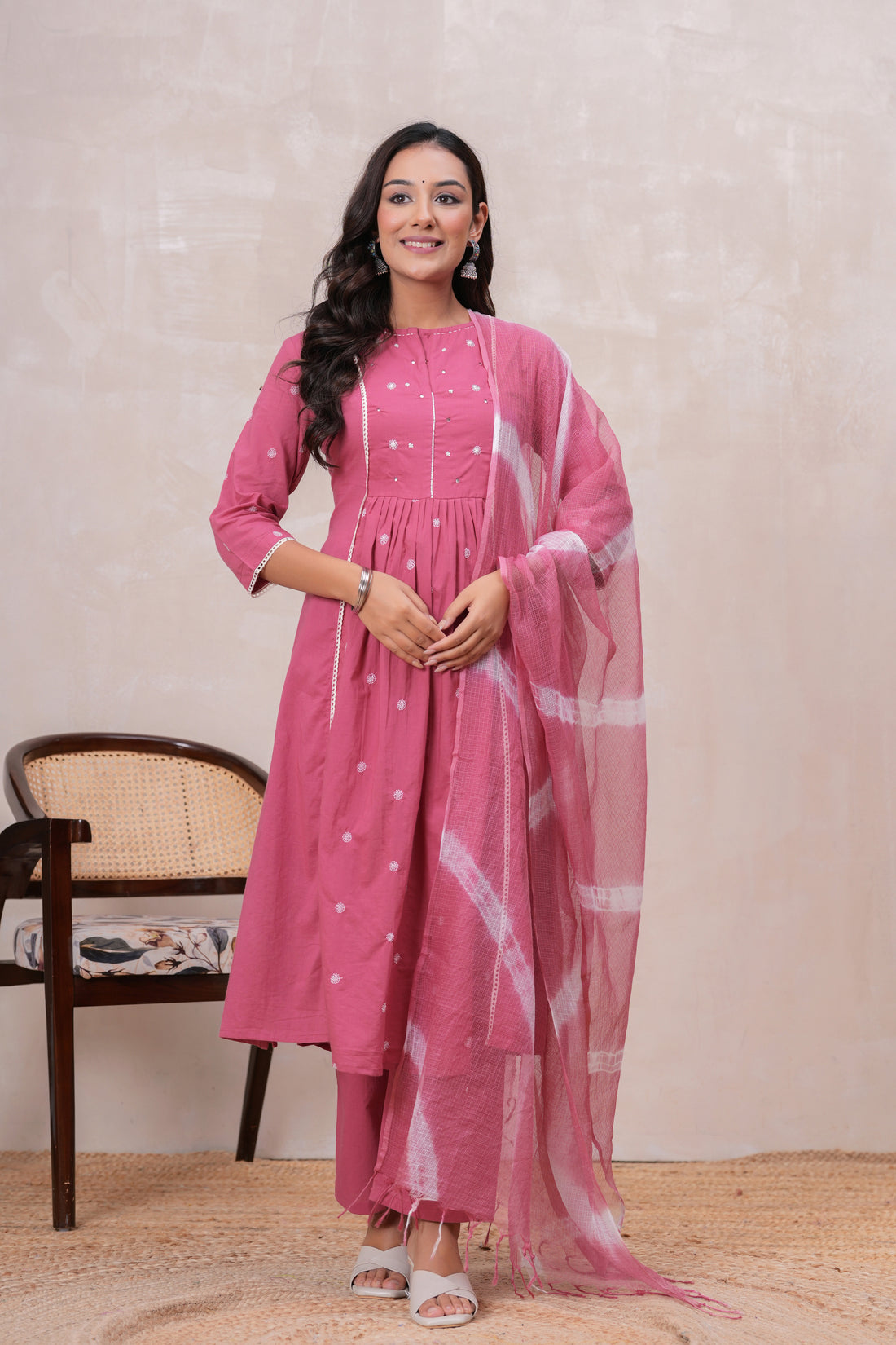 Bring a burst of freshness to your wardrobe with our Rustic rose Kali Suit Set,...