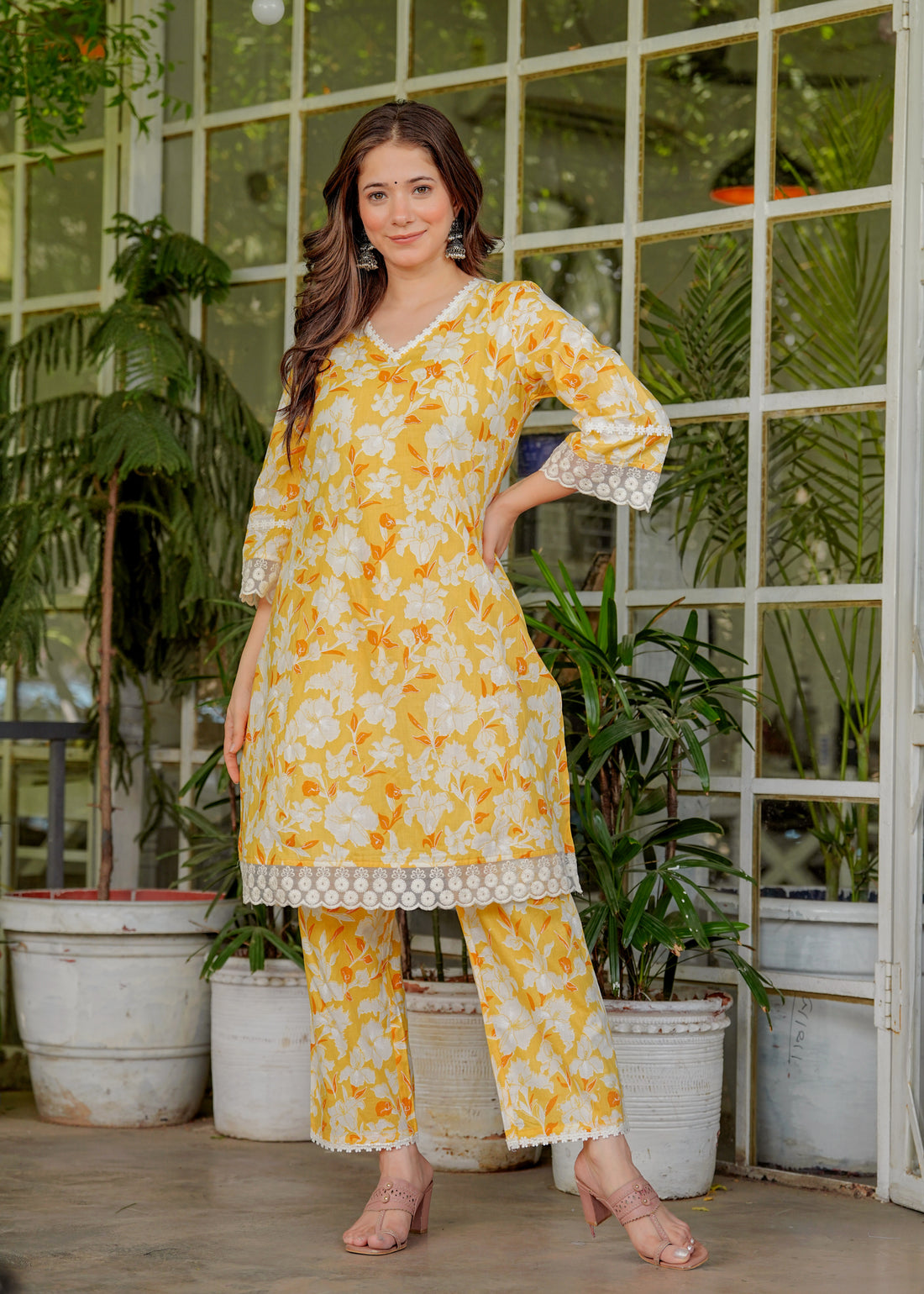 Step into subtle elegance with this pastel floral cotton co-ord set, perfect for casual charm...