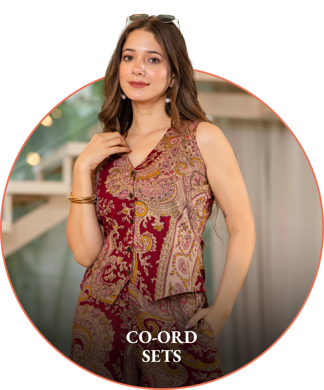 Step into effortless style with this chic handblock printed co-ord set. Designed in a sleeveless...