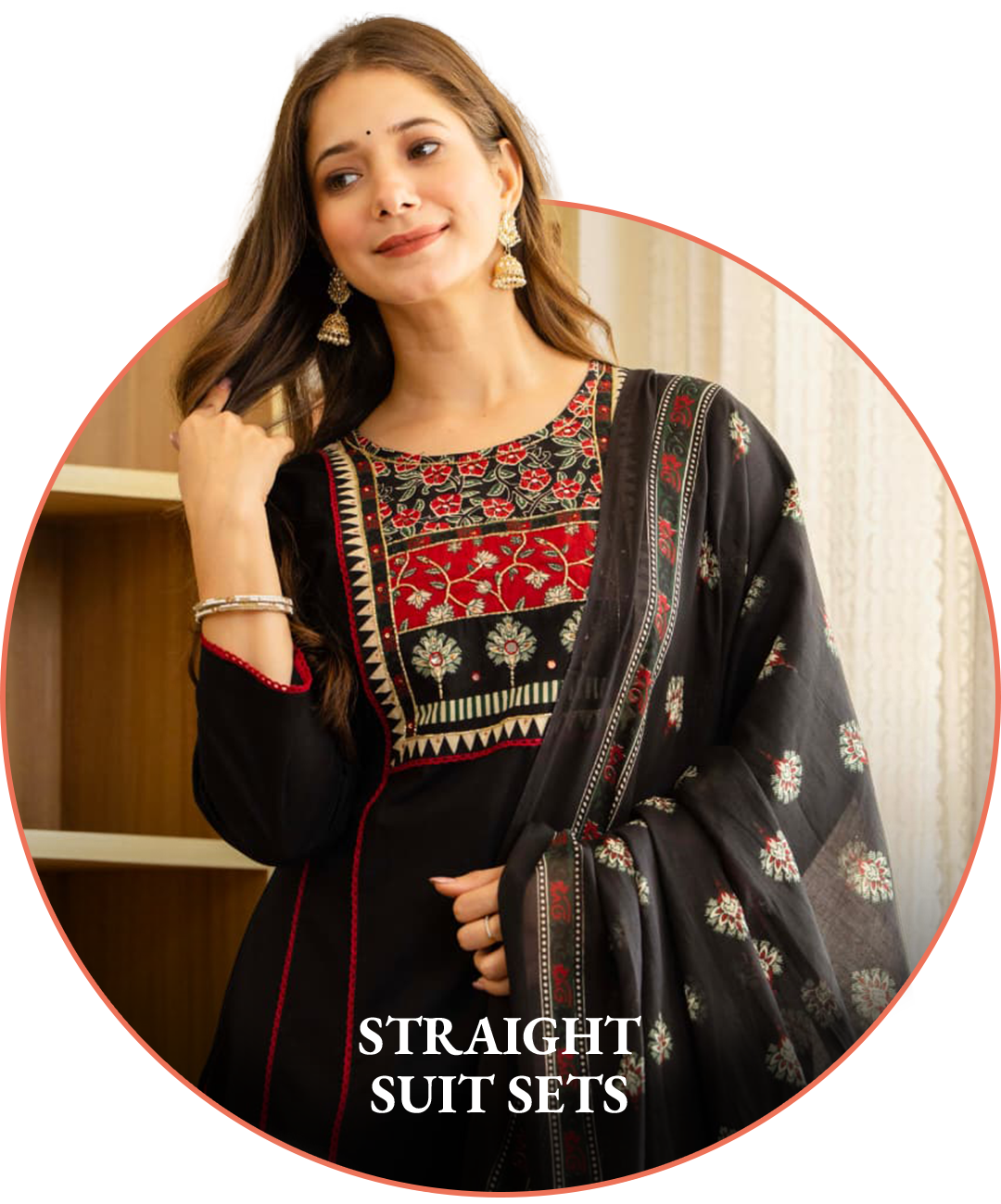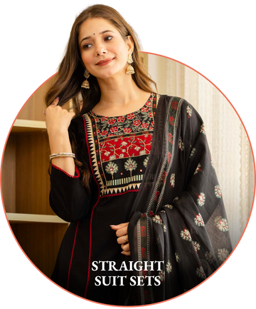 LEAF BLACK LACE STRAIGHT SUIT SET