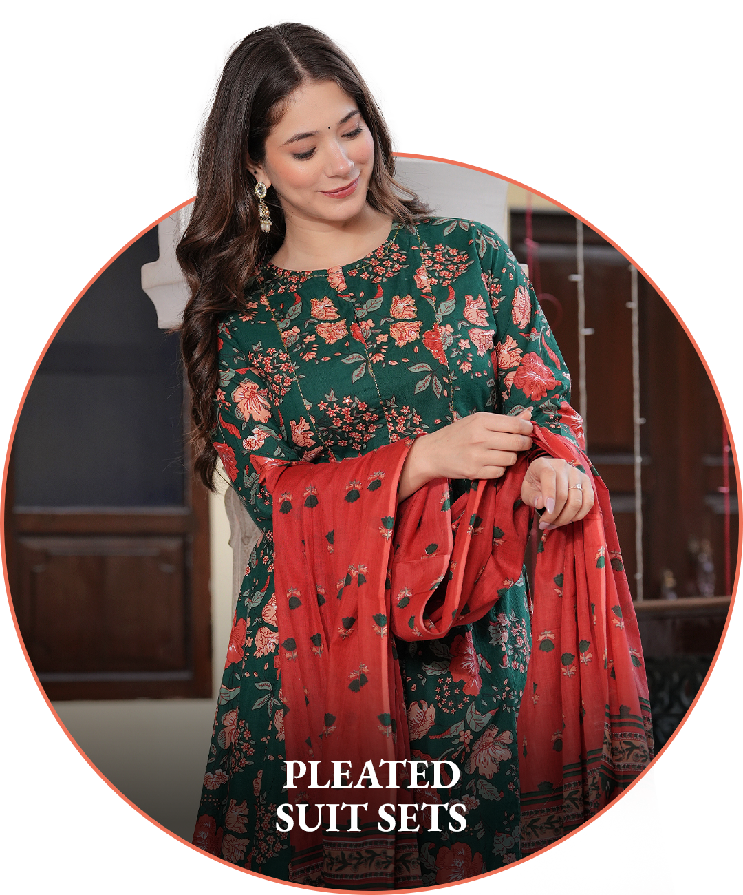 RUSTIC RED FLORAL KALIDAR SUIT SET
