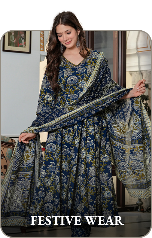 Grace that twirls with every step โ our white blue angrakha Anarkali Set is a...