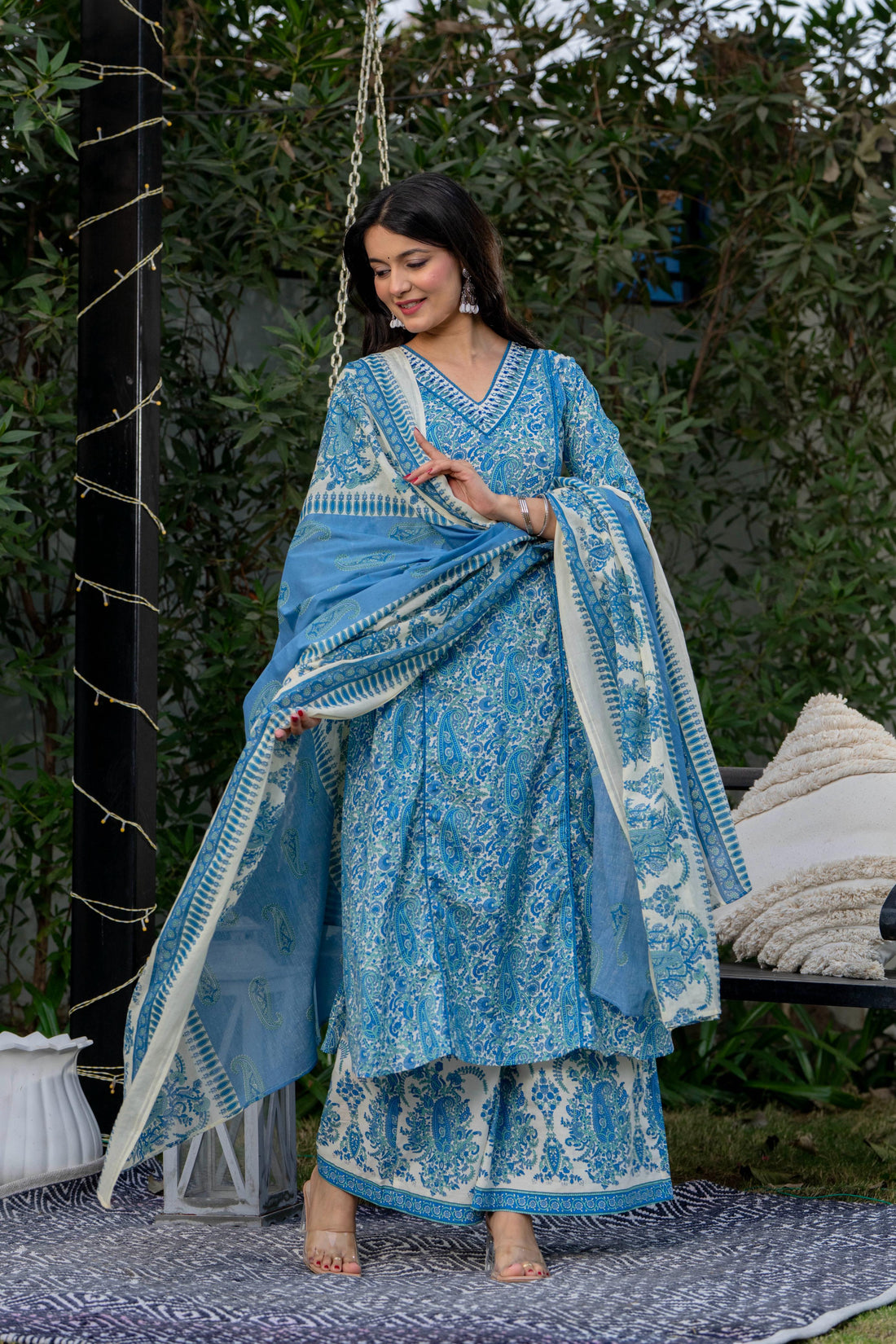 A timeless blend of grace and tradition, the Indigo Paisley Suit Set features intricate all-over...