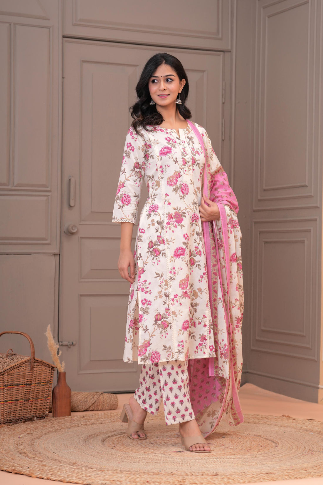 Embrace feminine elegance with this charming blush pink floral suit set, thoughtfully designed for effortless...