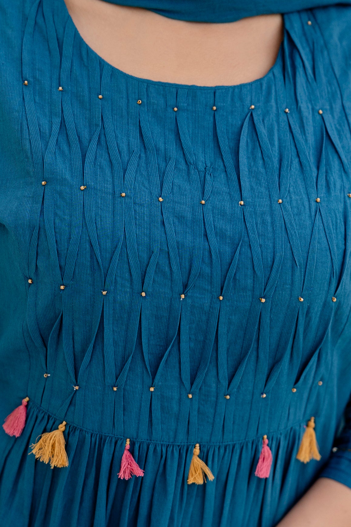 BLUE SMOCKED PLEATED SUIT SET