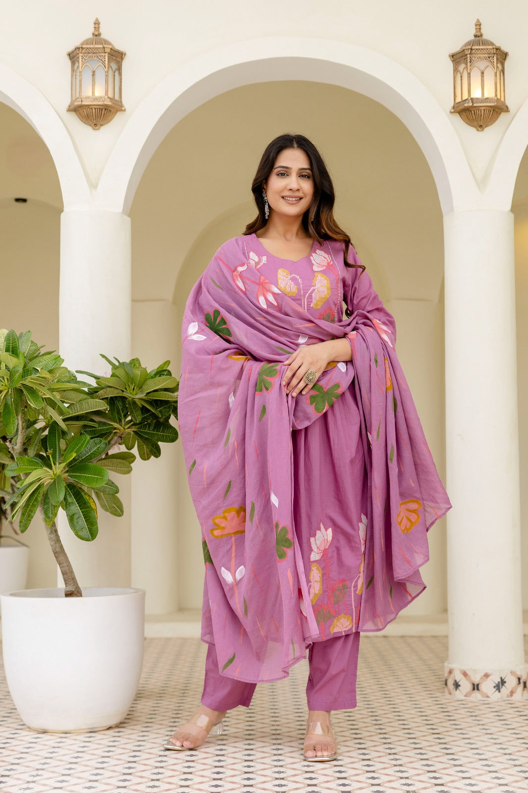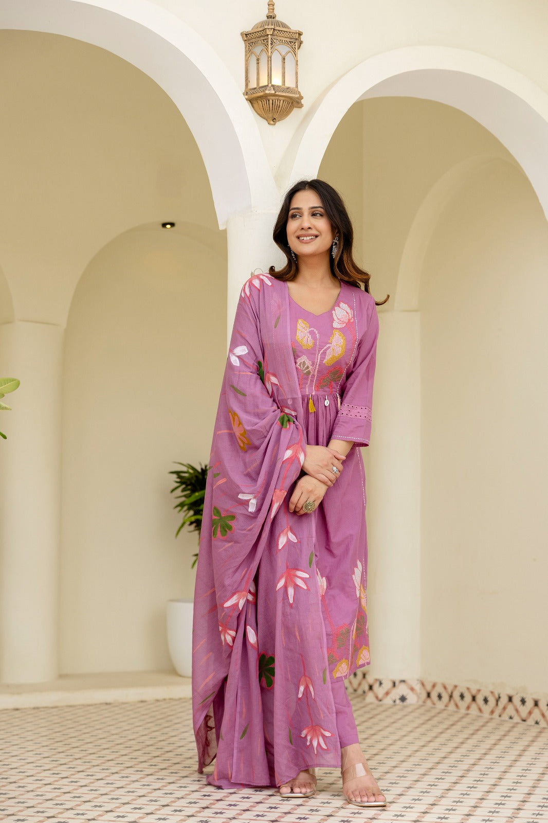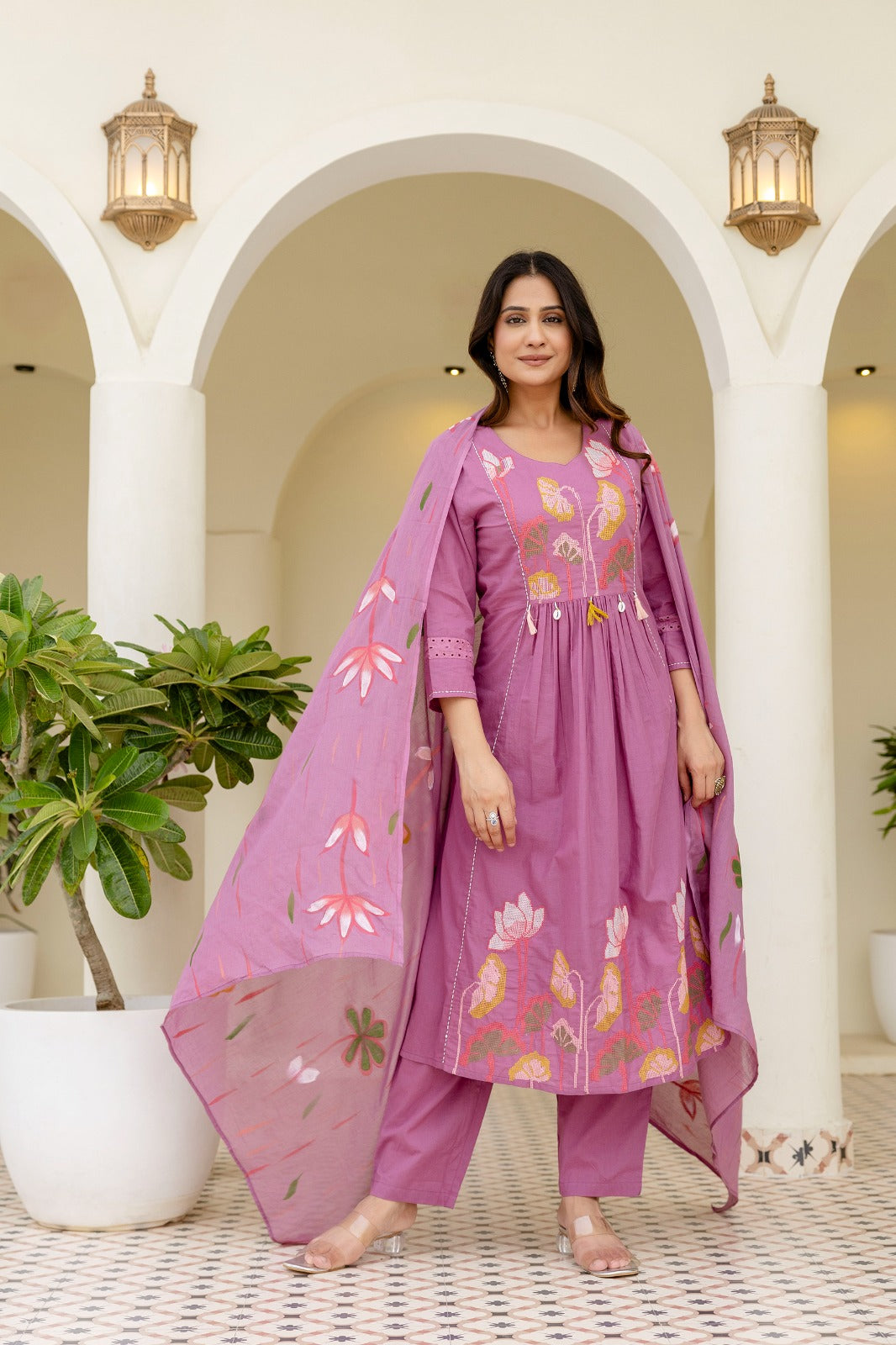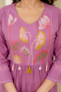 Grace meets charm in our Mauve pink tassel embroidery Suit Set, featuring delicate lotus-inspired computer embroidery on a serene mauve base. Paired with a matching dupatta adorned in floral motifs, this ensemble blends elegance and comfort effortlessly. Perfect for festive gatherings or daytime soirees — let your style bloom with every step.