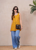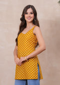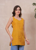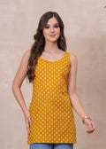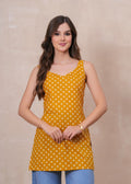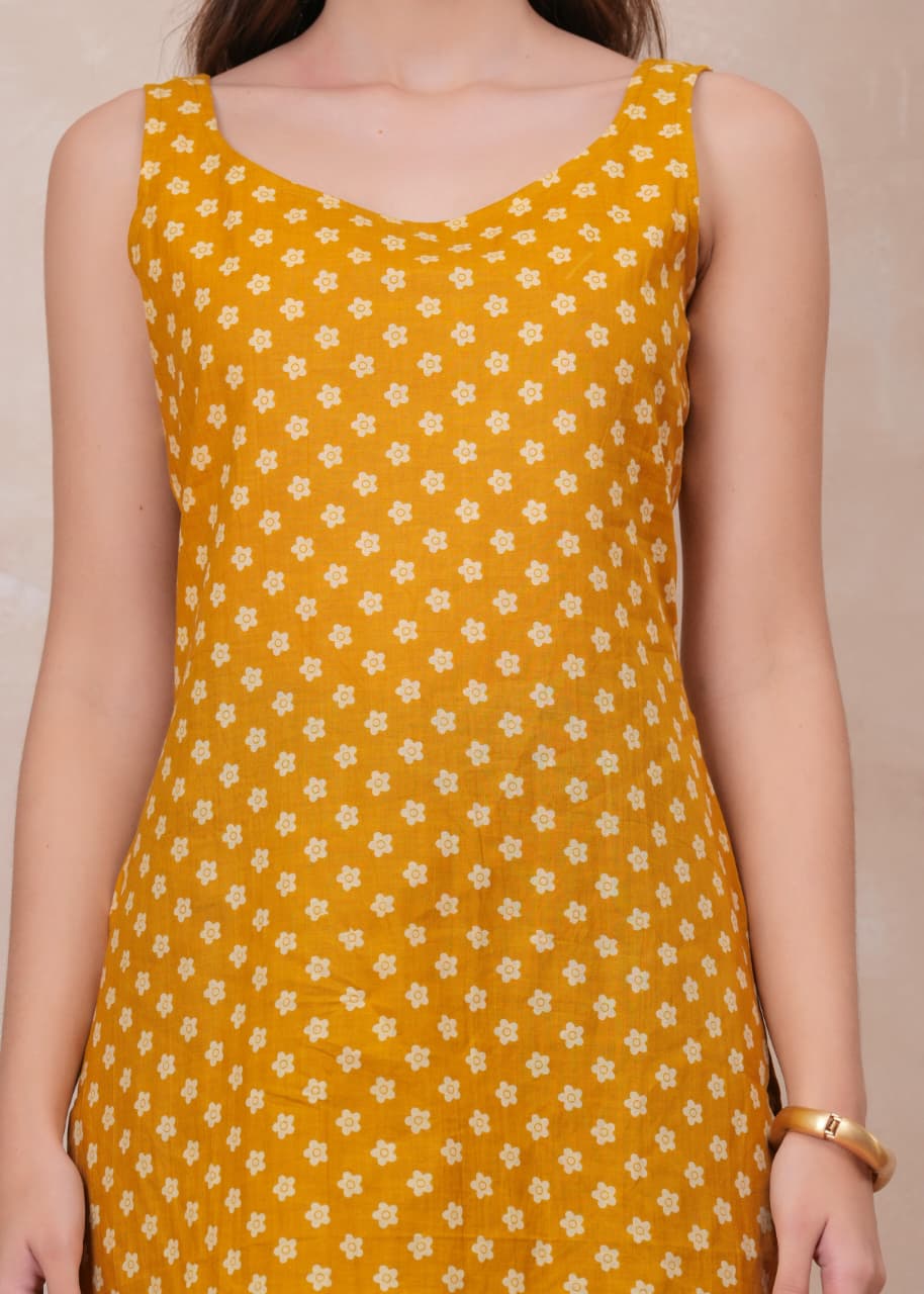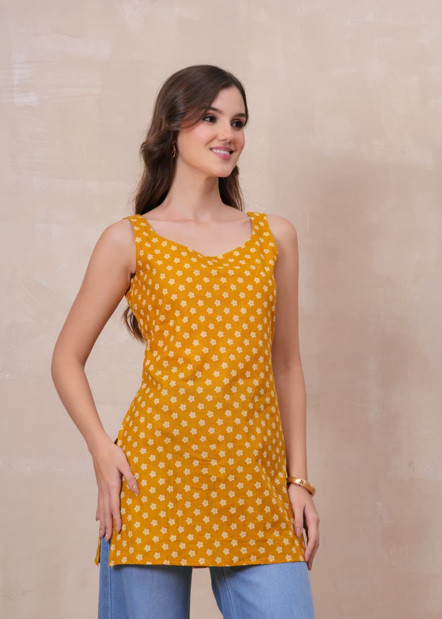 MUSTARD BLOSSOM SLEEVELESS SHORT KURTI