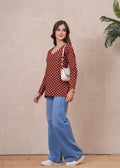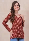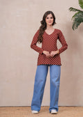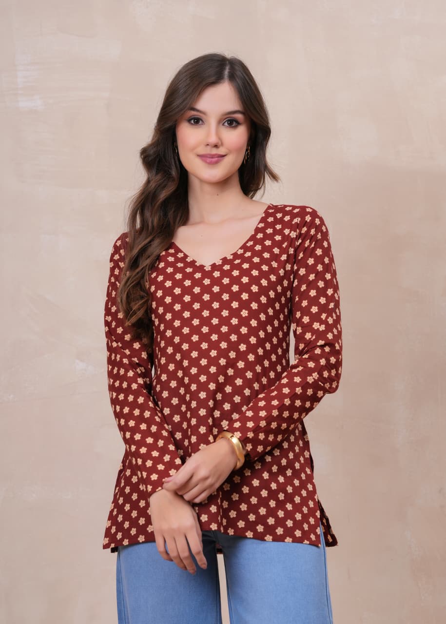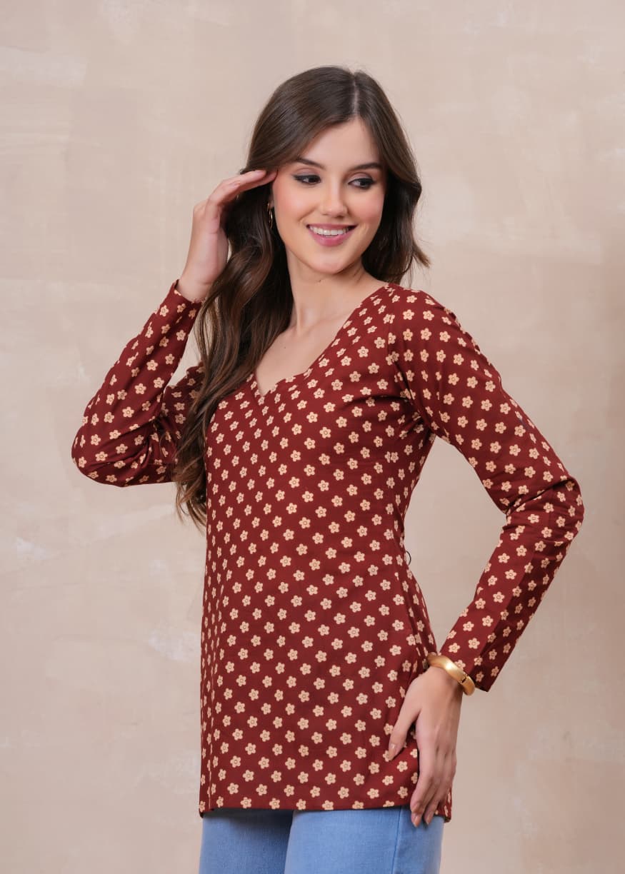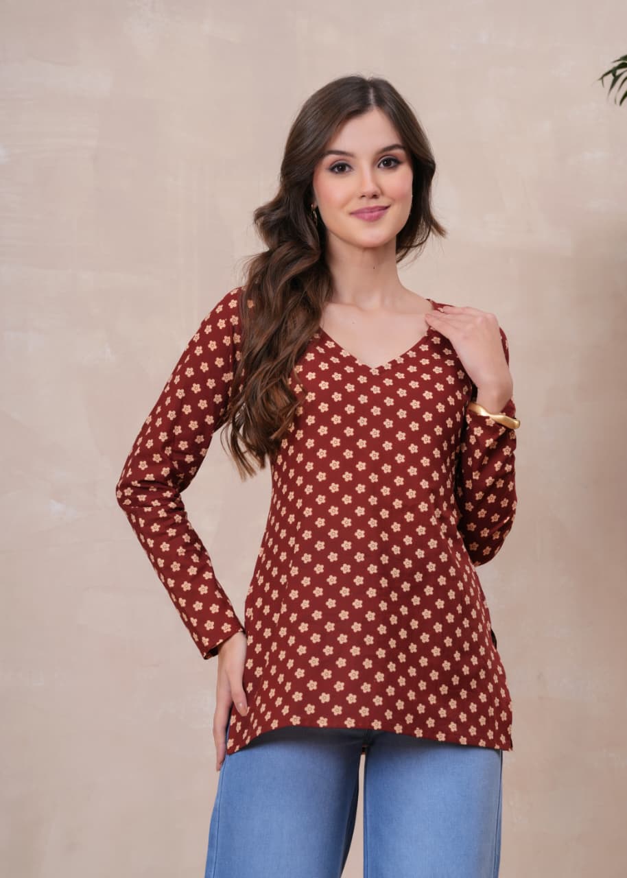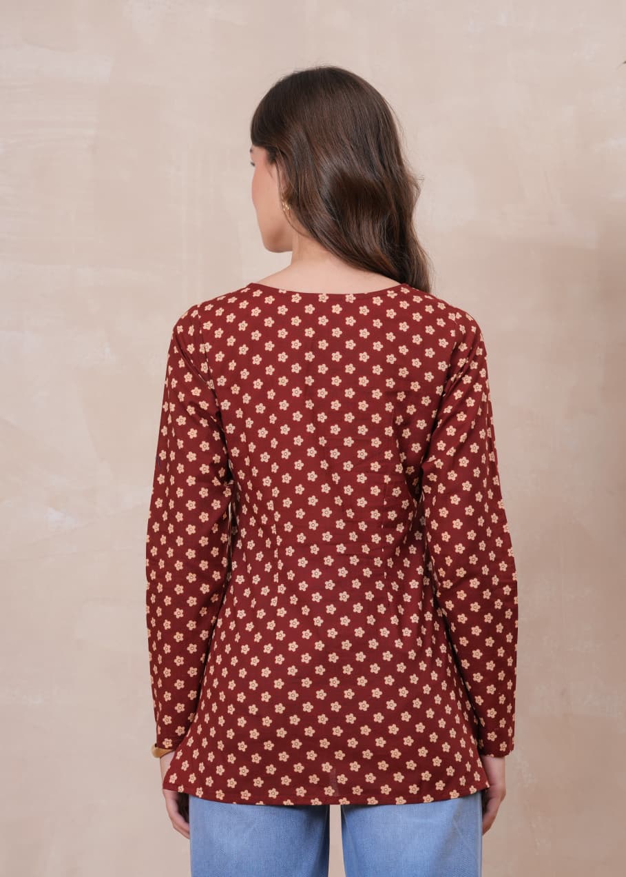 RUST BLOSSOM FULL SLEEVES SHORT KURTI