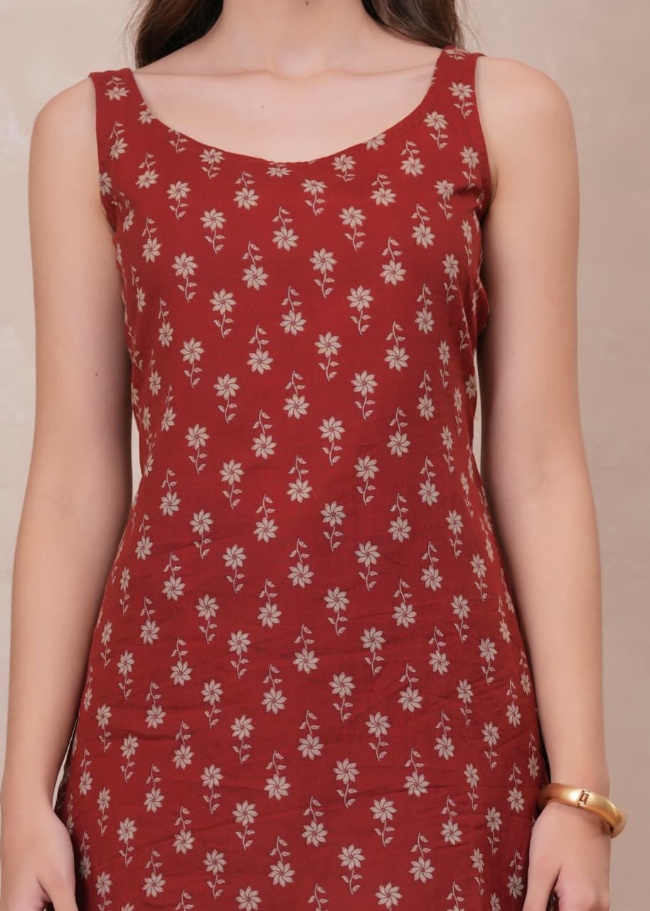 RUST BLOSSOM SLEEVELESS SHORT KURTI