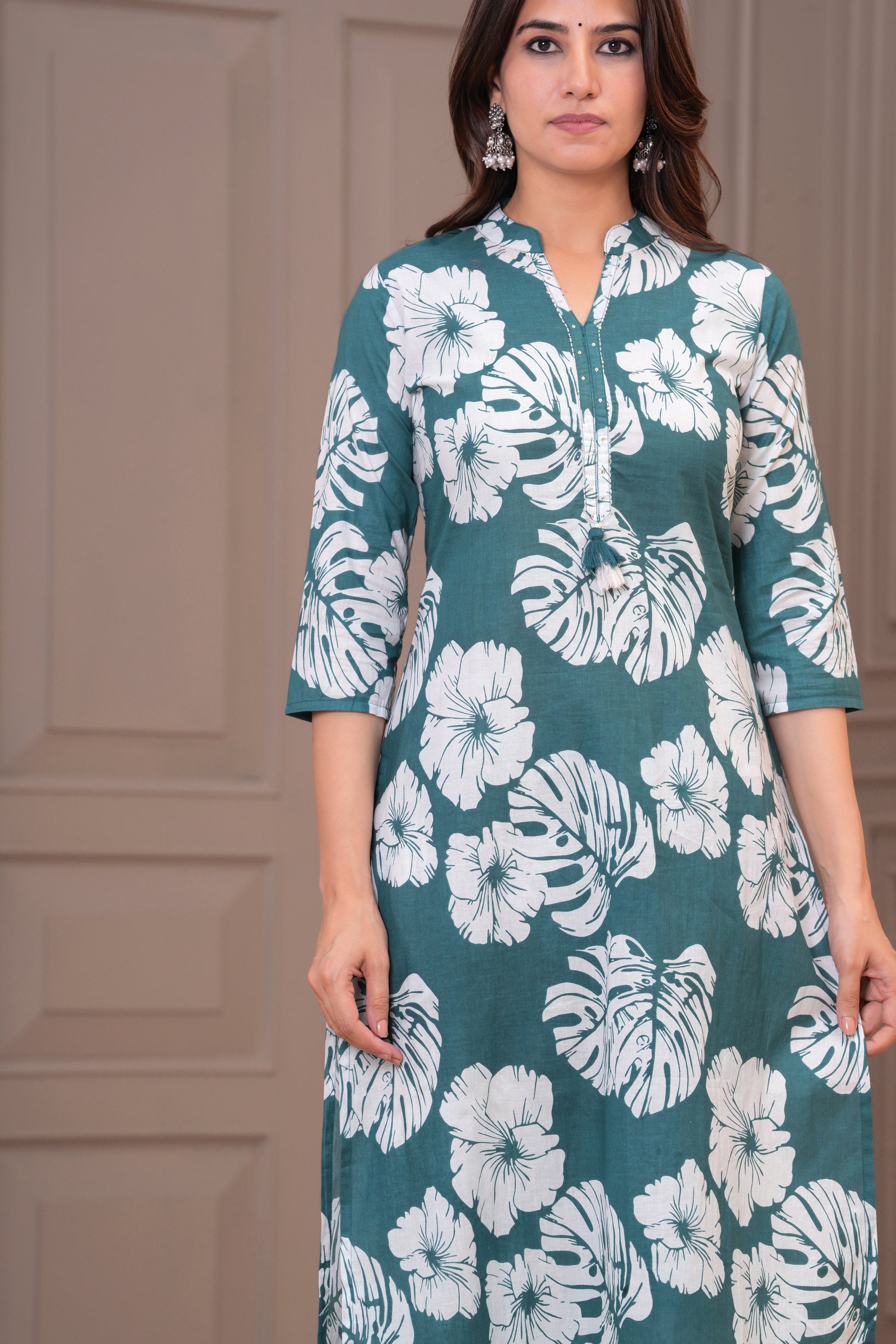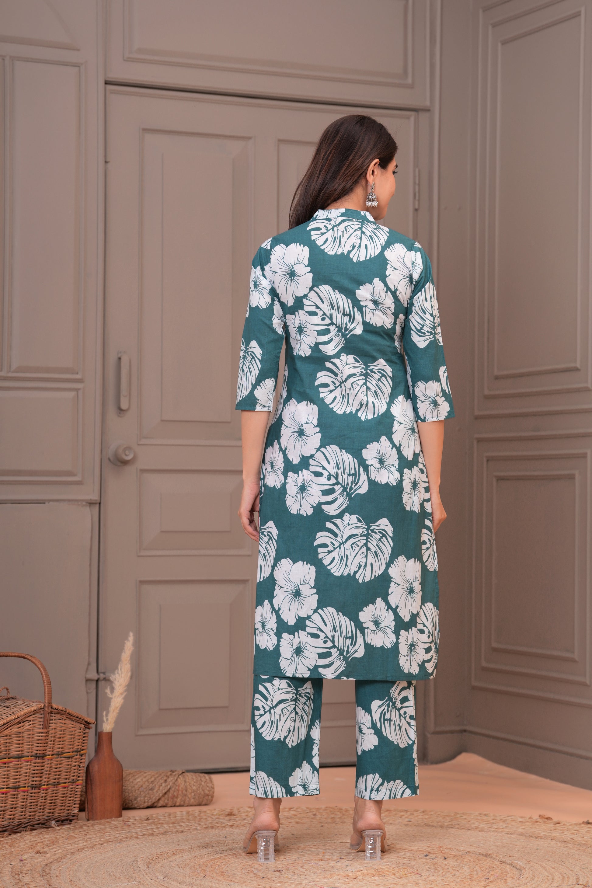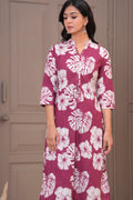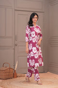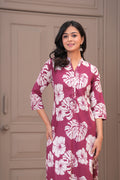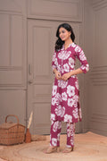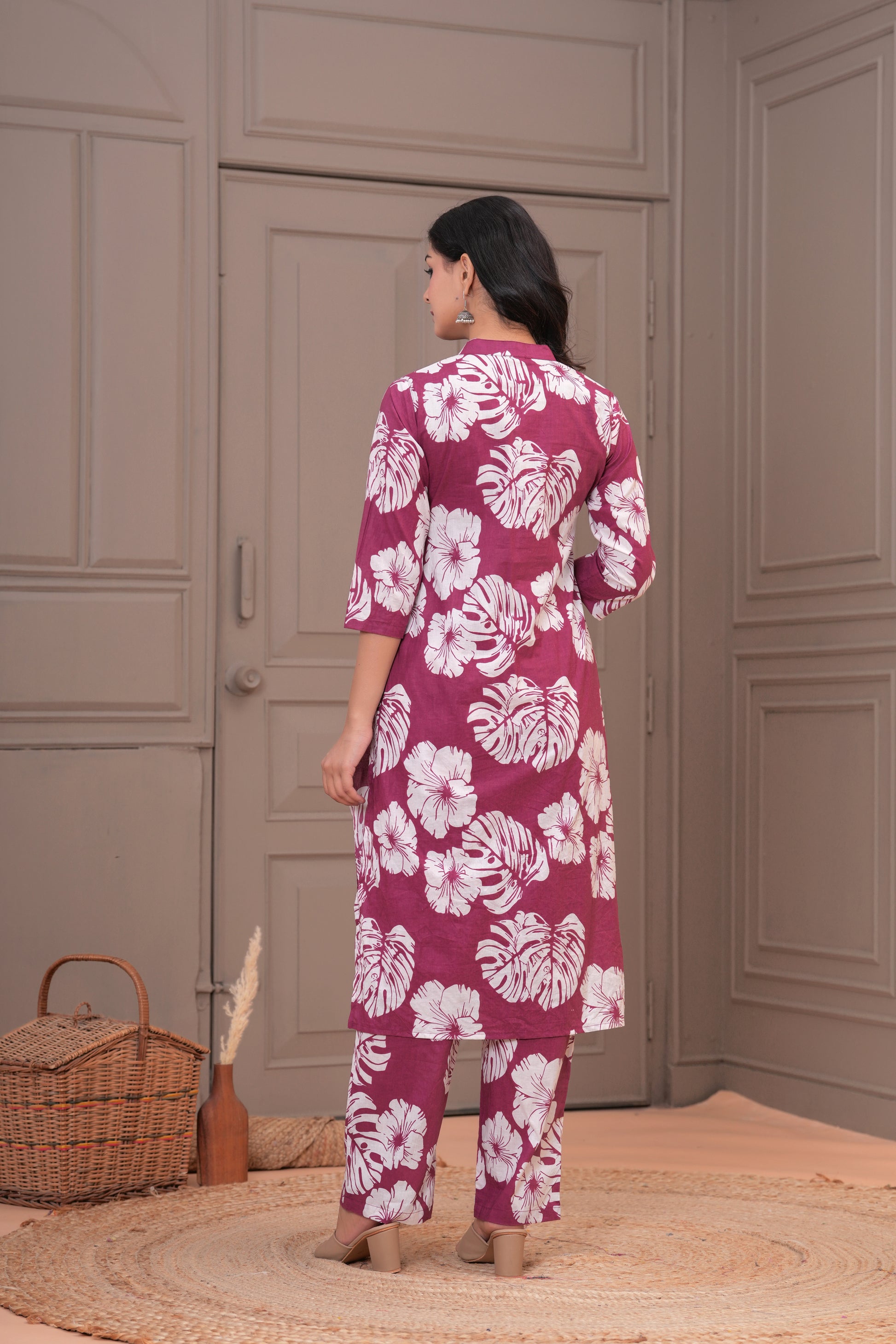 Refresh your wardrobe with this chic wine co-ord set featuring bold tropical prints. Designed for effortless style and comfort, this set includes a straight-fit kurta with a mandarin collar, tassels detailing, and 3/4th sleeves. Paired with matching straight pants, the soft, breathable fabric ensures ease of movement while the striking white floral and leaf print adds a modern touch. Perfect for casual outings, workdays, or relaxed gatherings.